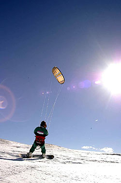 Neben dem einzigartigen Panorama bietet die Region eine besondere Thermik, ideale technische und klimatische Voraussetzungen für Snowkiter aller Fahrstärken.