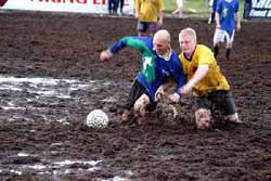 Sumpf-Fußball ist ein Sport für harte Kerle und für starke Waschmaschinen. Hier dürfen gestandene Männer und Frauen einmal